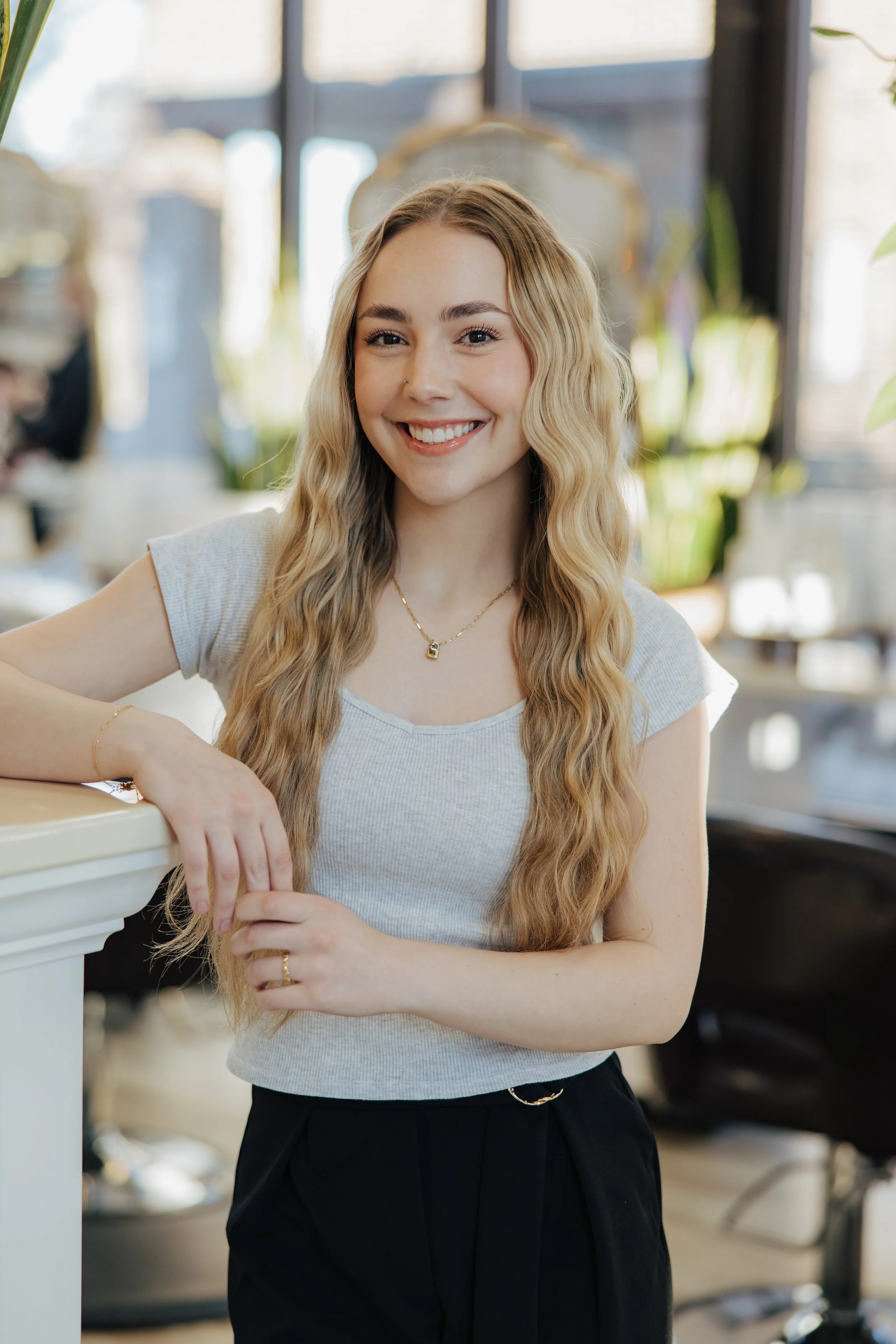 Hi! My name is Beth! From a young age, I aspired to be a hairstylist, driven by my love for creativity and beauty. I pay close attention to detail and enjoy customizing each hairstyle to fit your unique needs, ensuring you feel truly beautiful. The highlight of my job is seeing the joy on my client’s faces after a transformation. Outside of the salon, I love exploring new coffee shops, attending concerts, shopping and spending quality time with my husband, friends and two fur babies. I also enjoy hiking and relaxing by the lake. I can’t wait to meet you and make beautiful hair together!
